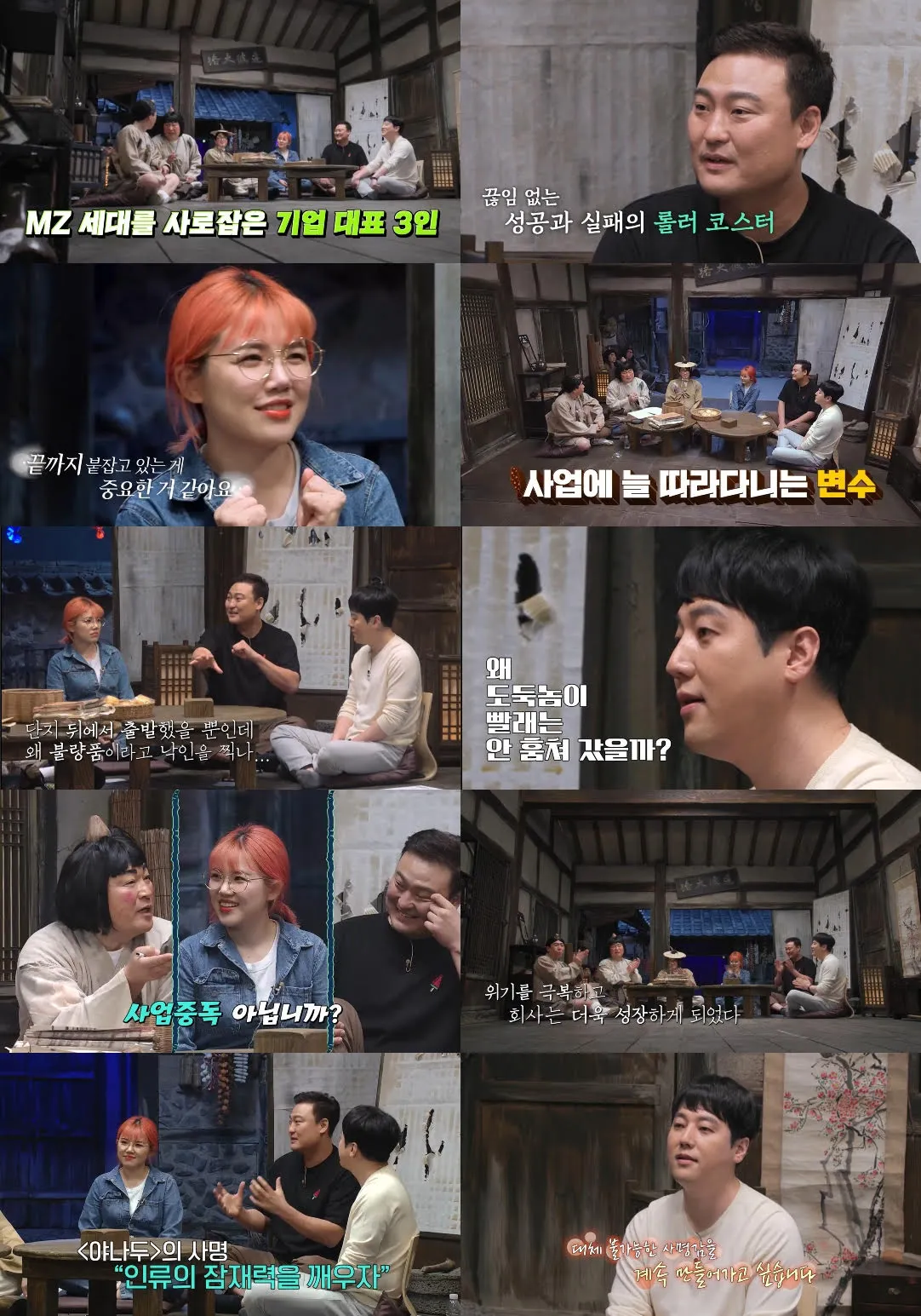 이날 대표 3인방은 성공 비결이 무엇인지 묻는 도깨비들의 질문에 “끝까지 붙잡고 있는 것”이라는 공통된 답변을 건네 이목을 집중시켰다. 인생이라는 이름의 롤러코스터에서 실패를 거듭할수록 더 큰 성장을 이룰 수 있다고 믿었던 마음가짐이 지금의 위치를 만들어냈다는 것. 그렇다면 기업인들이 여러 고비를 감수하며 닿으려 했던 목표는 무엇이었을지 궁금해지는 터, 각자 사업의 첫걸음을 짚으며 성공 스토리를 전했다.