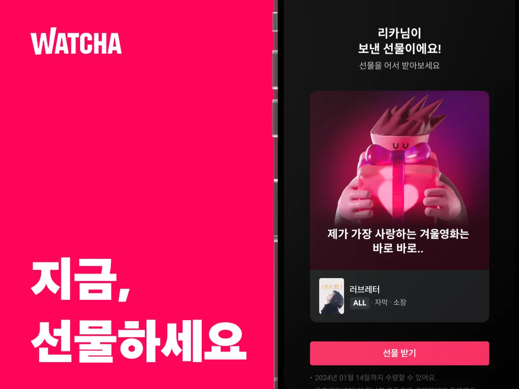 왓챠, VOD 선물하기 기능 오픈…건별 결제 매출 520% 성장