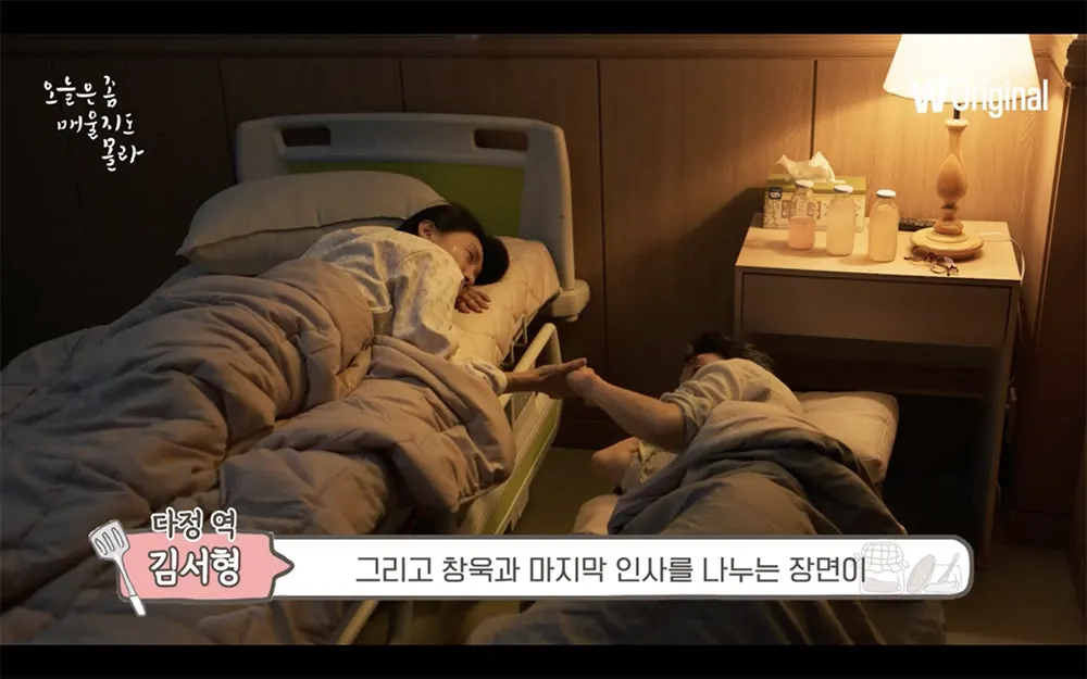 이번에 공개된 마지막 촬영 소감 영상은 생생한 현장감이 느껴지는 마지막 촬영 현장과 배우들이 직접 전하는 촬영 소감을 담고 있어 그동안 <오늘은 좀 매울지도 몰라>를 사랑해 준 시청자들에게 뜻깊은 선물을 전했다. 아내를 위한 소중한 한 끼를 준비하는 ‘창욱’ 역을 맡은 한석규는 “OTT 드라마는 이번이 처음이었는데 정말 운 좋게 제가 원하는 이야기를 만났다”며 작품에 대한 애정을 드러냈다. 한석규는 <오늘은 좀 매울지도 몰라>를 통해 빼어난 연기력과 요리 실력까지 선보이며 색다른 매력을 뽐내 화제가 되었다. 이어 감성퀸으로 완벽 변신에 성공한 김서형은 기억에 남는 장면이 있냐는 질문에 “수목장을 보러 가는 장면이 있다. 그 장면을 찍으러 갔던 날이 기억에 남는다”며 시청자들의 가슴을 뭉클하게 했던 장면을 언급했다. 여기에 한석규와 김서형이 이별을 준비하는 다정하고 애틋한 장면들의 비하인드가 반가움을 더했다.