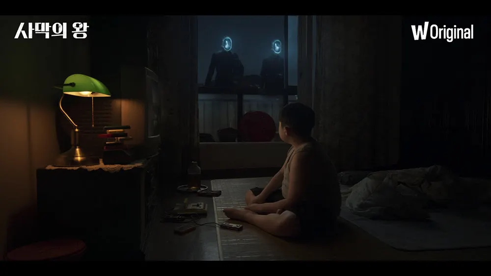 먼저, 지난 1화 선공개 영상에 이어 추가로 공개된 영상은 <사막의 왕> 두 번째 에피소드 [1 UP]에서 ‘동현’이 초능력을 얻게 된 계기를 담아 흥미를 증폭시킨다. 밤중에 비디오 게임을 하던 어린 ‘동현’은 우연히 길을 묻는 외계인들을 마주하게 된다. ‘동현’에게 도움을 받은 외계인들은 그에게 보답으로 죽었을 때 12시간 더 살 수 있는 능력을 선물한다. 자신이 받은 초능력이 정확히 어떤 의미인지, 나중에 어떻게 쓰일지 전혀 모르는 듯한 표정을 짓고 있는 어린 ‘동현’의 장면 다음에 등장하는 어른 ‘동현’의 모습은 초능력으로 인해 벌어질 걷잡을 수 없는 충격적인 전개에 대한 궁금증을 끌어올린다. 외계인과 초능력을 비롯한 파격적인 소재는 물론, 김보통 작가의 뛰어난 상상력으로 완성된 <사막의 왕>은 모든 예측을 뛰어넘는 스토리와 유기적으로 연결된 치밀한 세계관으로 시청자들을 매료시킬 전망이다.