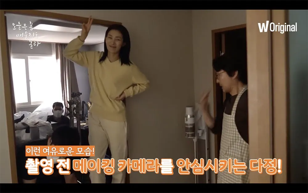 이번에 공개된 5-6부 비하인드 영상은 5-6부의 명장면들을 떠올리게 하며 잔잔하고 가슴 뭉클한 본편과는 다른 장난기 넘치는 촬영 현장을 담고 있다. 먼저 한석규는 아내 ‘다정’을 위한 과일 주스를 준비하는 비교적 간단한 조리과정에서도 완벽하게 ‘창욱’으로 몰입했다. 조리 과정에 대한 의견을 제시하기도 하는 등 완벽한 ‘요리 연기’를 펼치기 위한 열정적인 모습을 선보였다. 그리고 ‘띄엄띄엄 탕수육’을 준비하는 생생한 과정도 눈길을 사로잡았다. 탕수육 조리를 위한 웍을 주방거리에서 직접 구매하고, 마트 청년 ‘수원’(양경원)에게 웍질을 배워 집에서 끊임없이 연습하는 인상적인 장면들의 유쾌한 비하인드는 한석규의 장난기 넘치는 애드립으로 완성되었다. 완벽한 캐릭터 소화력을 보여 새로운 ‘감성퀸’으로 화제가 되고 있는 김서형 역시 카메라 뒤에서는 웃음을 잃지 않으며 화기애애한 분위기를 만들었다. 메이킹 카메라를 향해 연신 인사를 건네고 귀여운 포즈를 취하기도 해 보는 이를 미소 짓게 했다.